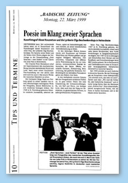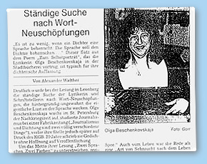 *** Westdeutscher Rundfunk Köln 12.10.95 Sehr verehrte Frau Beschenkovskaja, *** 8.Januar 1996Landeshauptstadt Stuttgart Der Oberbürgermeister Sehr geehrte Frau Beschenkovskaja, vielen Dank für Ihre freundlichen Zeilen und die Übersendung Ihrer gelungenen Gedichte. Auch ich wünsche Ihnen für das Neue Jahr alles Gute und verbleibe mit freundlichen Grüßen Dr. Manfred Rommel *** Дорогая Olga!